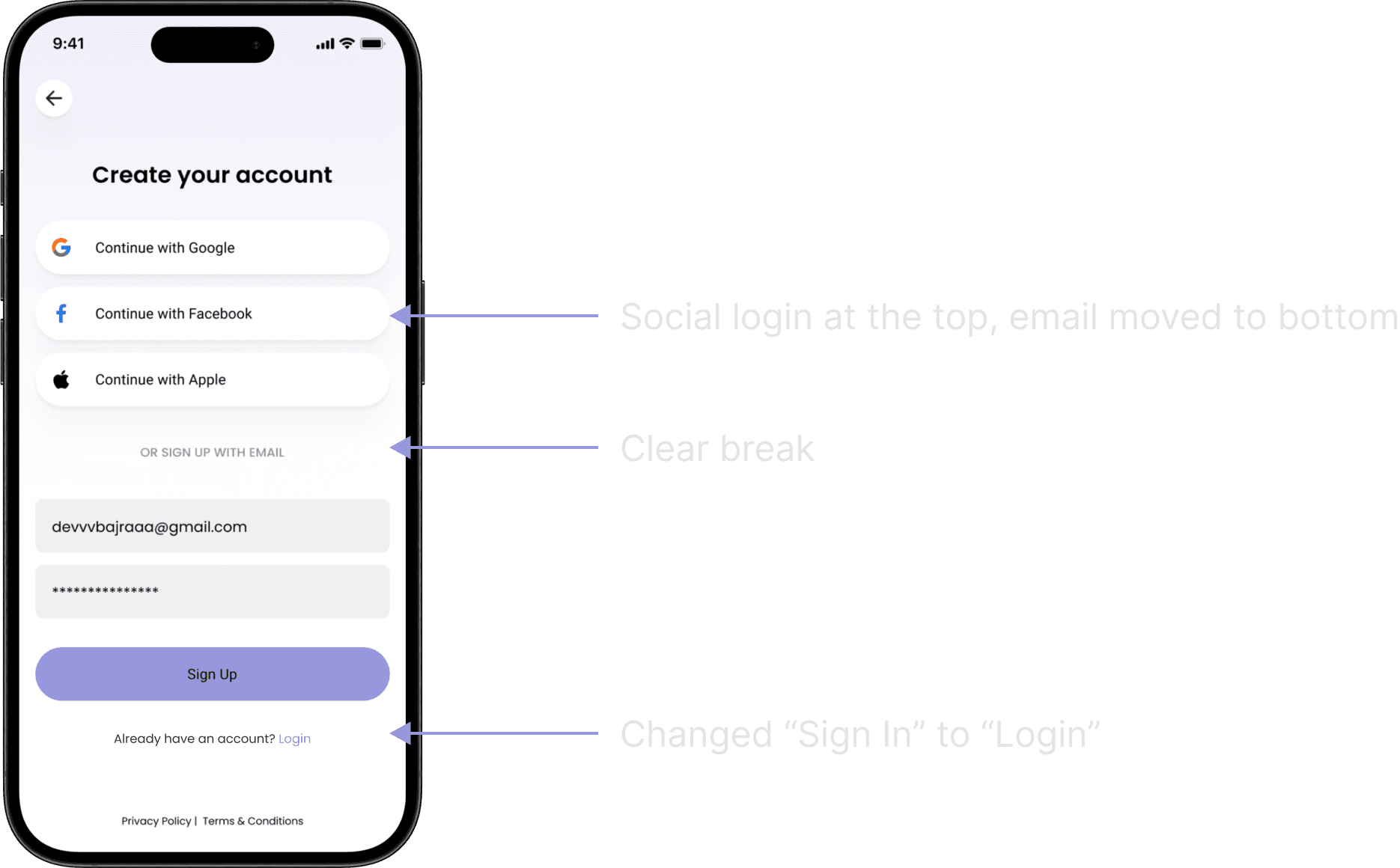 Identified the need for an improved onboarding process, enhancing the initial user experience. A less user-friendly sign-up process resulted in lower conversion rates.